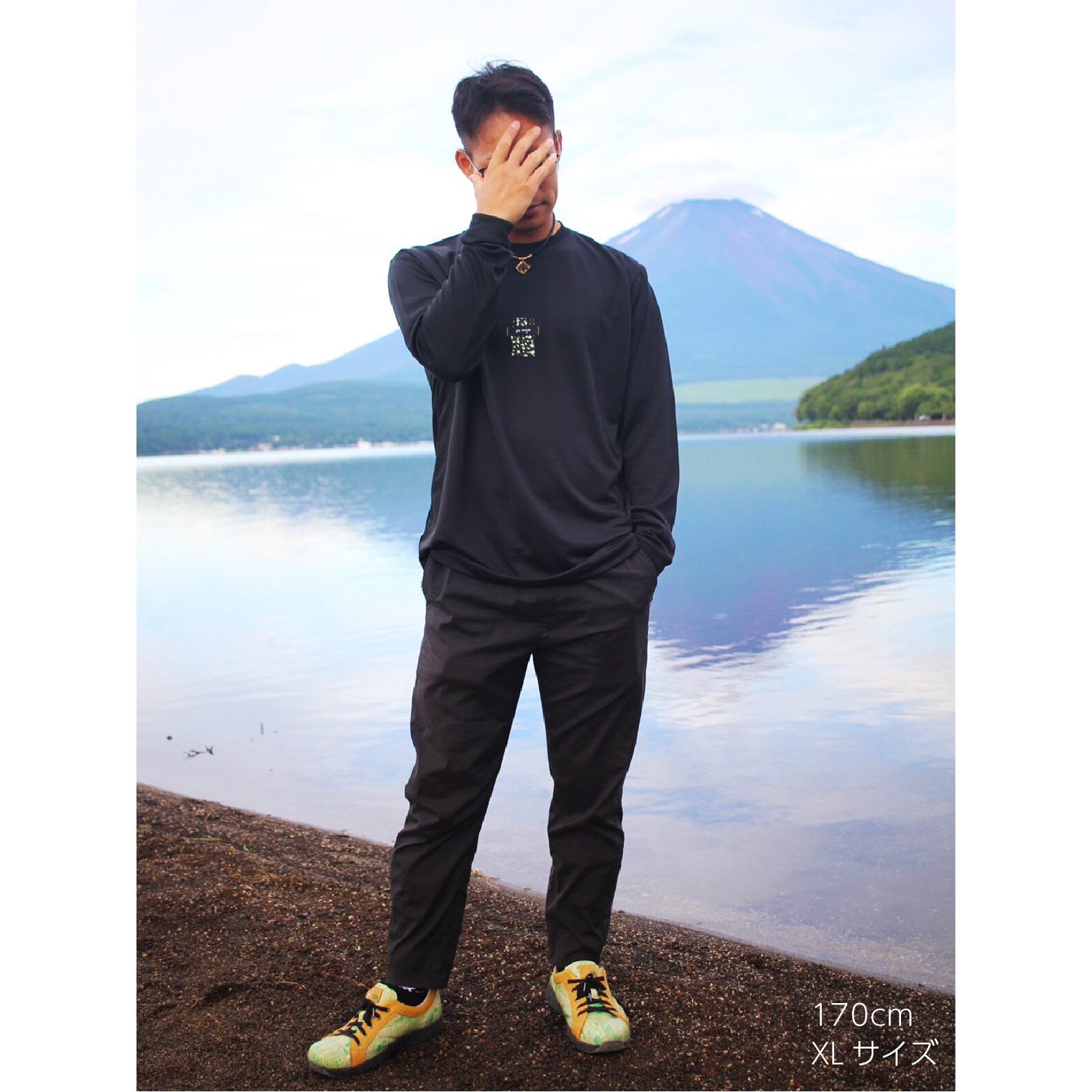 イエローのステッチが特徴的なキテンゲを使用したデザイン。タンザニアから直輸入しているアフリカ布のキテンゲをあしらったドライTシャツ。キテンゲの柄はカット部によりデザインが異なります。世界にひとつだけ、あなただけのデザインをお楽しみください。